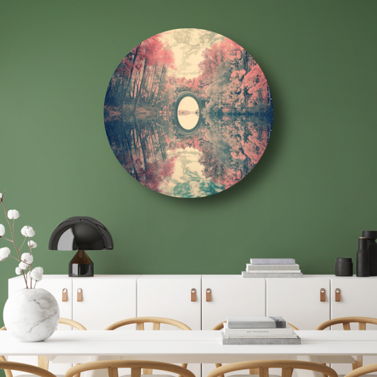 Impressionistische brug in boslandschap aluminium muurcirkel