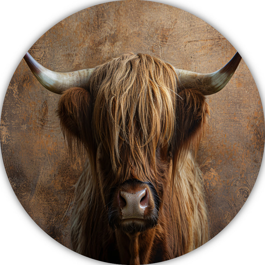 De Schotse Hooglander muurcirkels combineren landelijke charme met moderne eenvoud in ronde...