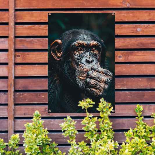 Gedetailleerd portret van een denkende chimpansee tuinposter
