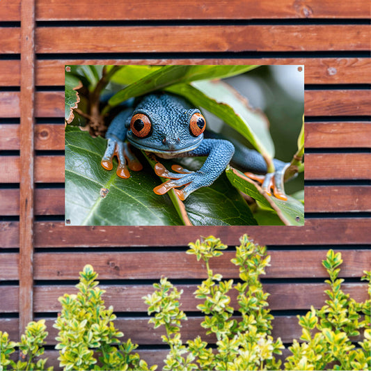 Groene kikker op blad tuinposter