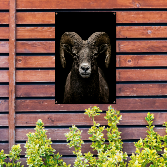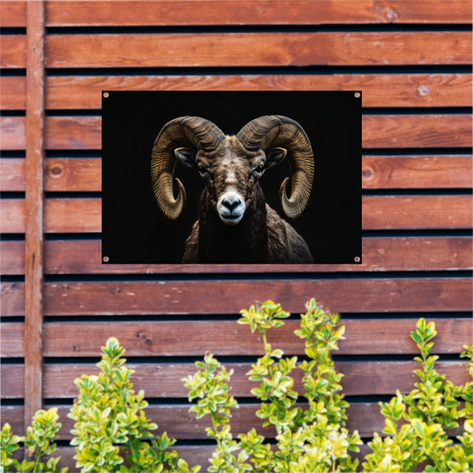 Indrukwekkende Ram met Elegante Krullende Hoorns tuinposter