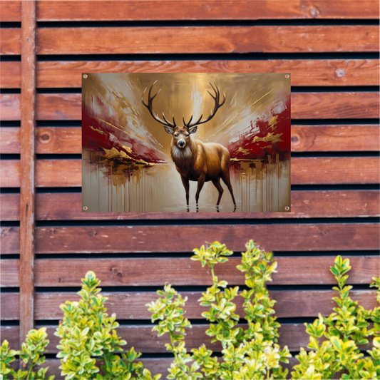 Majestueuze Gouden Hert in Abstract Rood tuinposter