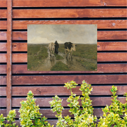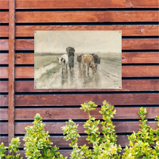 Een boerin met koeien op een landweg in de regen - Anton Mauve tuinposter