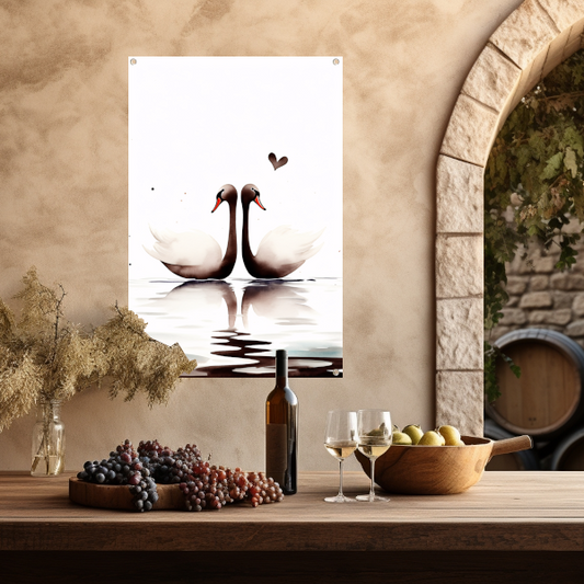 Elegante Zwanen en Liefde in Sepia Tinten tuinposter