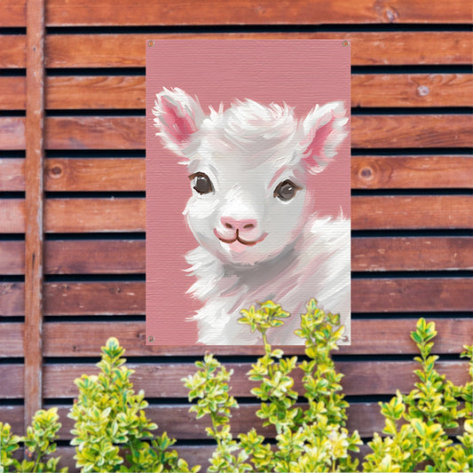 Schattig lammetje met roze achtergrond schilderij tuinposter