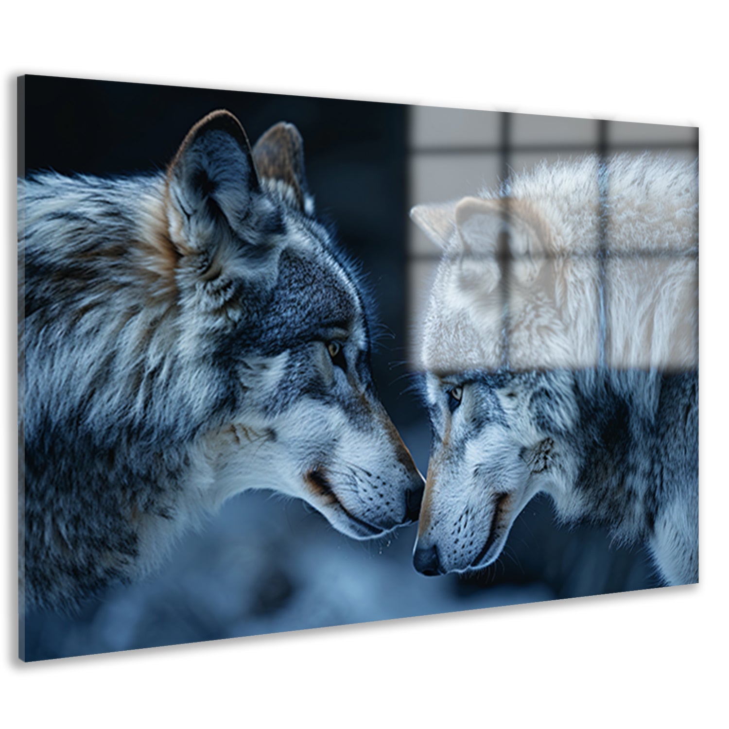 Intieme confrontatie tussen twee leeuwen acrylglas