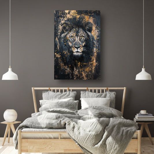 Mysterieus leeuwenportret met rustieke details acrylglas