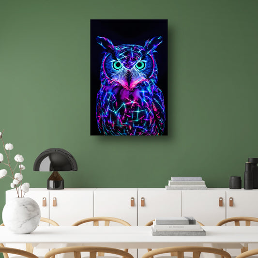 Fluorescerende futuristische uil in levendige kleuren acrylglas