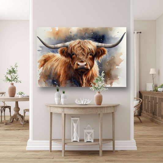 Highland koe portret met waterverf acrylglas
