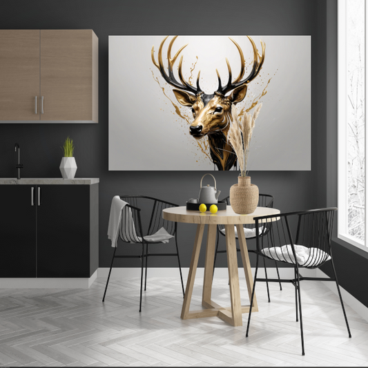 Gouden Hertenhoofd met Dynamische Spatten acrylglas