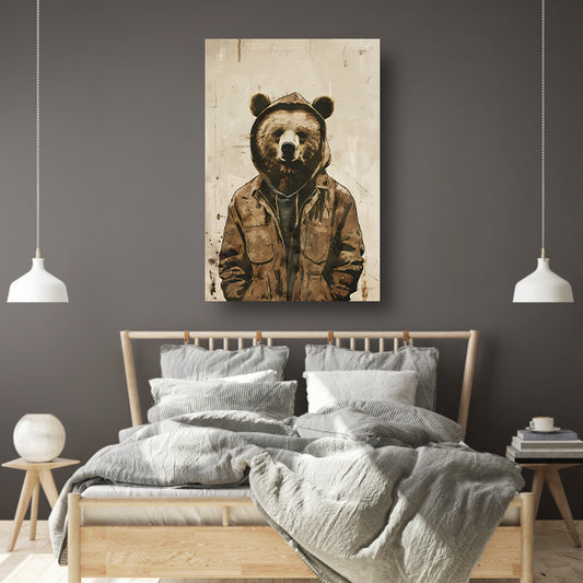 Beer met Hoodie en Jas in Sepia acrylglas