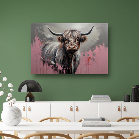 Abstracte Turquoise Schotse Hooglander in Olieverf acrylglas