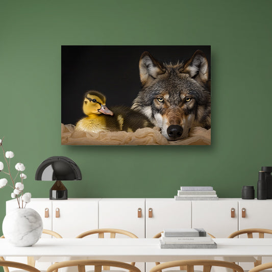 Wolf en eendling: onwaarschijnlijke ontmoeting acrylglas