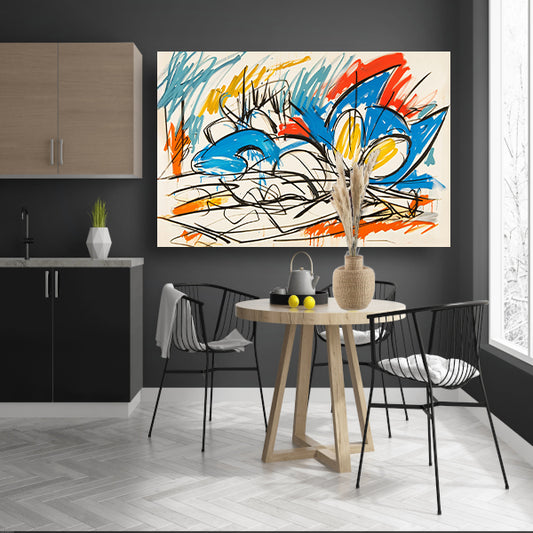 Abstracte leeuw in levendige graffiti-stijl canvas met baklijst