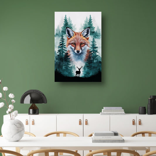 Vos en hert in boslandschap kunst canvas met baklijst