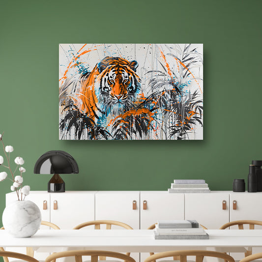 Dynamisch schilderij van tijger in kleur canvas met baklijst