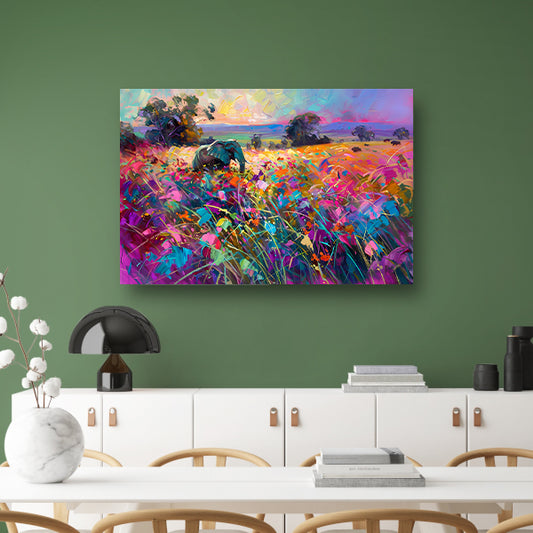 Abstracte kleurrijke koe schilderij op canvas canvas met baklijst