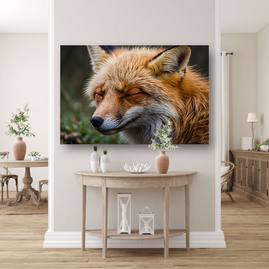 Slapende vos in de natuur vastgelegd canvas met baklijst