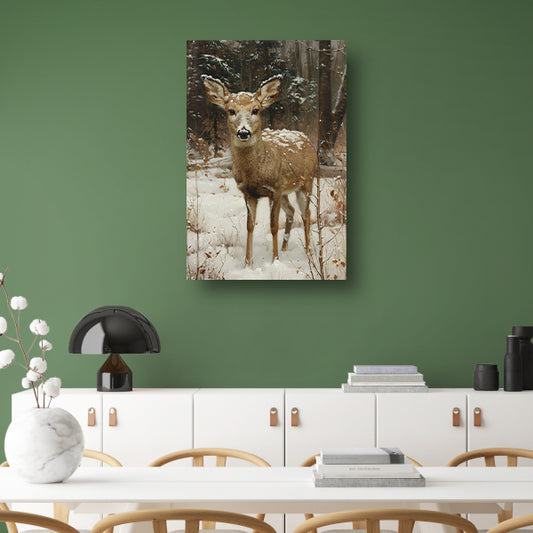 Realistisch schilderij van hert in besneeuwd bos canvas met baklijst