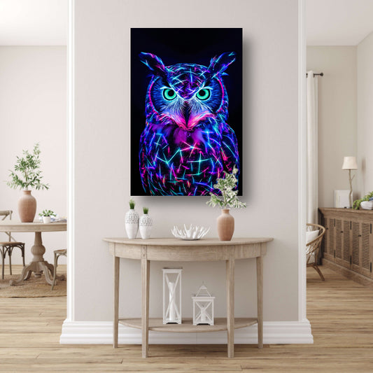 Fluorescerende futuristische uil in levendige kleuren canvas met baklijst