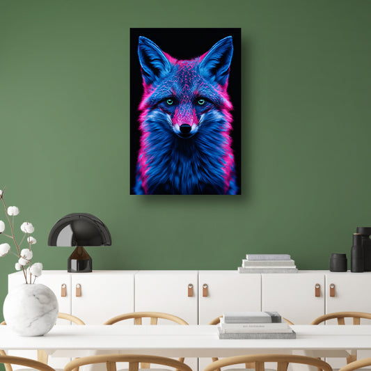 Neon vos kunstwerk met levendige kleuren canvas met baklijst