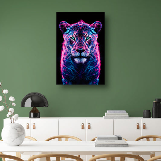 Futuristische bioluminescente leeuw met kleurrijke lichten canvas met baklijst