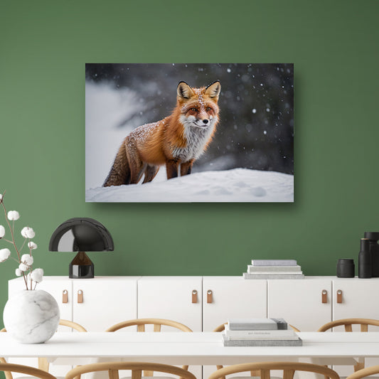 Majestueuze vos in een sneeuwlandschap canvas met baklijst