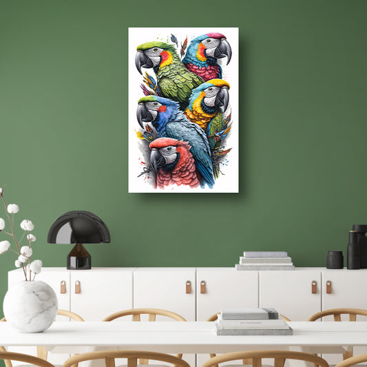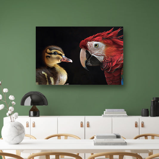 Ara en eend ontmoeting canvas met baklijst