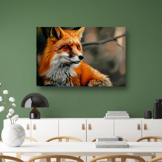 Roodvos in boslandschap canvas met baklijst