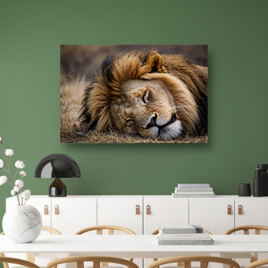 Slapende leeuw in zijn natuurlijke habitat canvas met baklijst