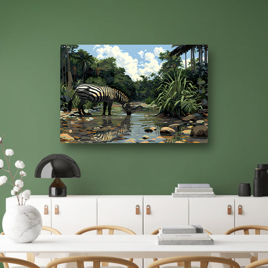 Zebra in natuurlijke omgeving bij zonsondergang canvas met baklijst