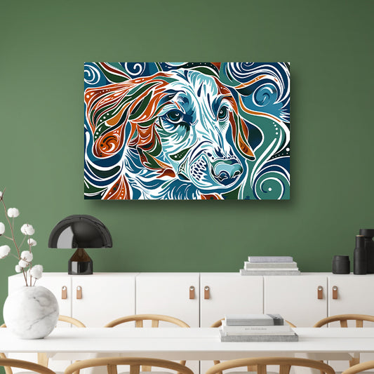 Abstracte lijntekening van een hond in kleur canvas met baklijst