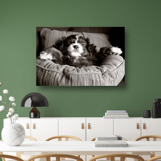 Slapende viervoeter: Slapende viervoeter in comfortabel bed. canvas met baklijst