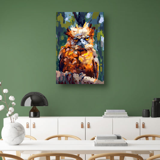 Digitale schilderij van kleurrijke vogel op tak canvas met baklijst
