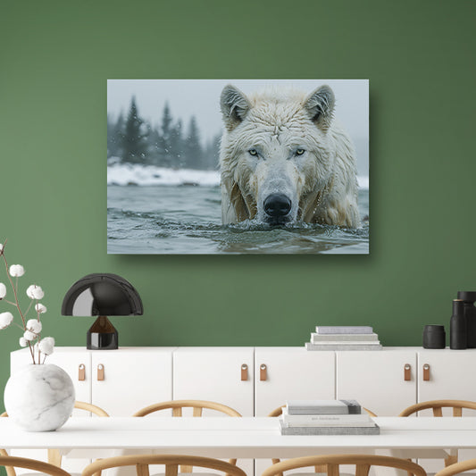Witte Wolf in Water canvas met baklijst