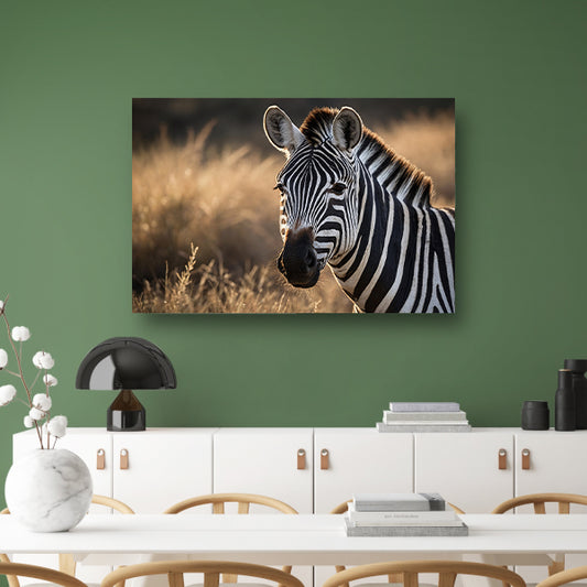 Zebra bij zonsondergang in het wild canvas met baklijst