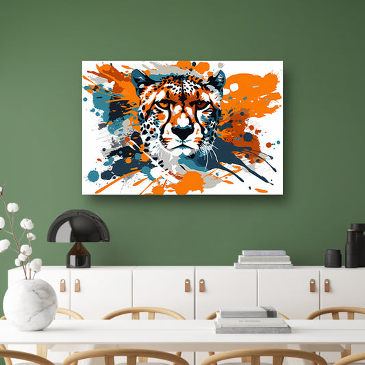 Dynamische abstracte cheeta schilderij print canvas met baklijst
