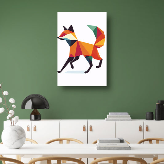 Geometrische vos in kleurrijke vlakken schilderij canvas met baklijst