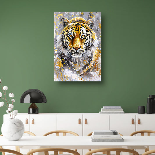 Surrealistische tijger met dynamische kleuren canvas met baklijst