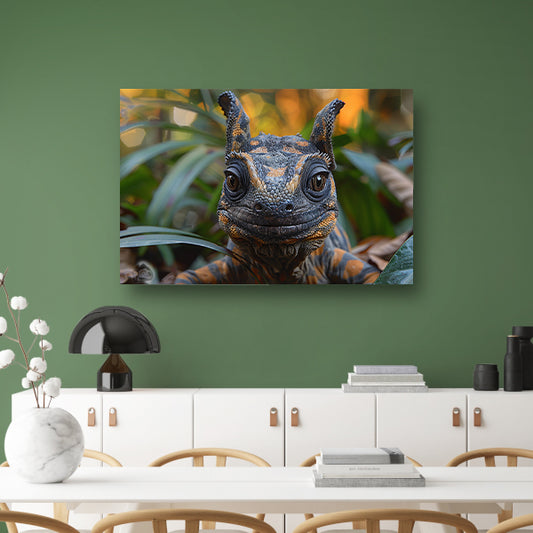 Realistisch reptiel portret met kleurrijke details canvas met baklijst