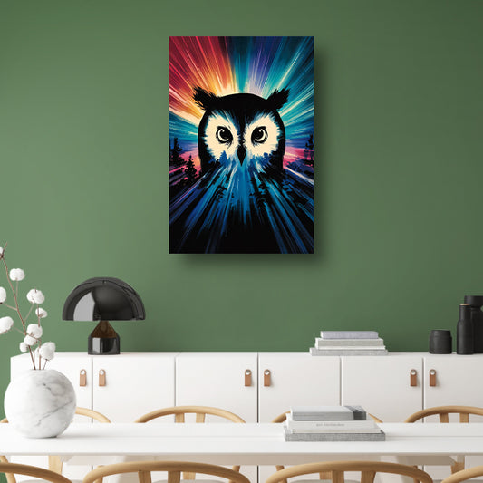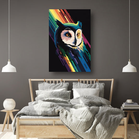 Kleurrijke uil met dynamische achtergrond canvas met baklijst