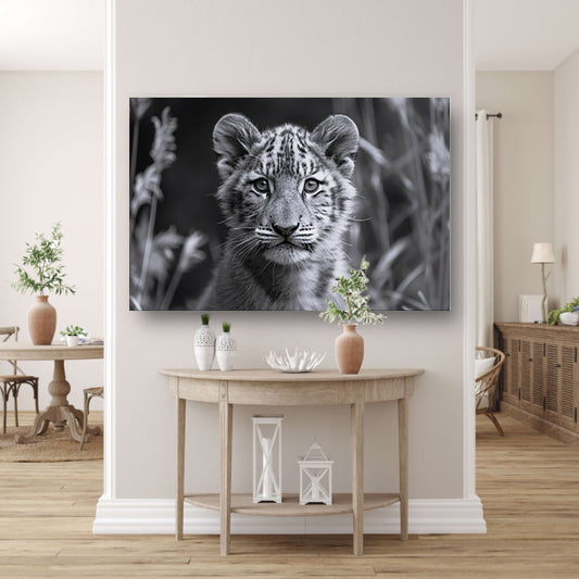 Zwart-wit foto van een jonge welp canvas met baklijst