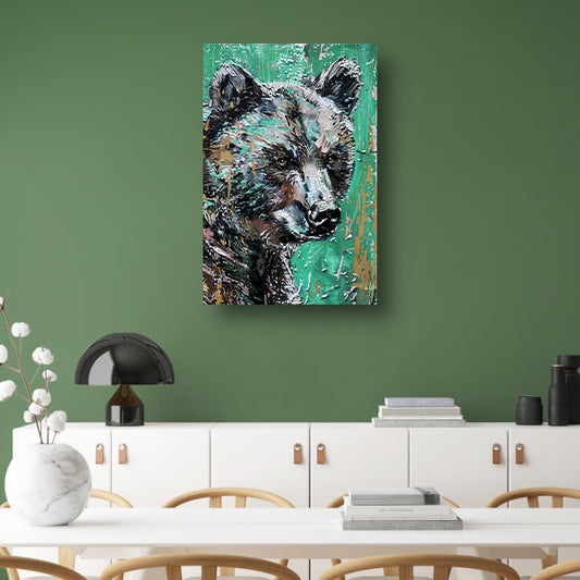 Abstracte schildering van een beer met kleuren canvas met baklijst