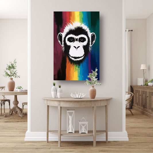 Abstracte aap met regenboog achtergrond canvas met baklijst