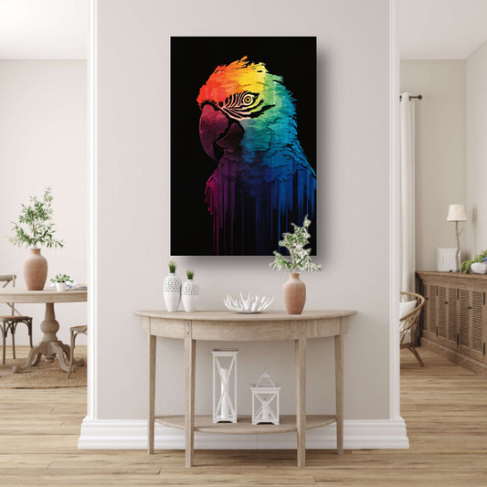 Regenboogkleurige papegaai in abstracte kunst canvas met baklijst