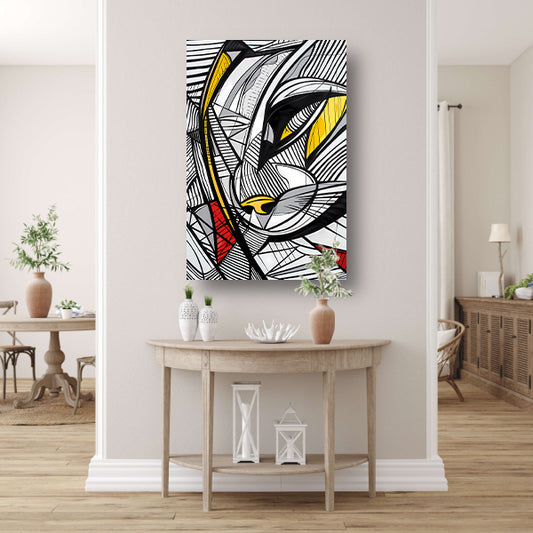 Abstracte lijntekening van een katachtige in kleur canvas met baklijst