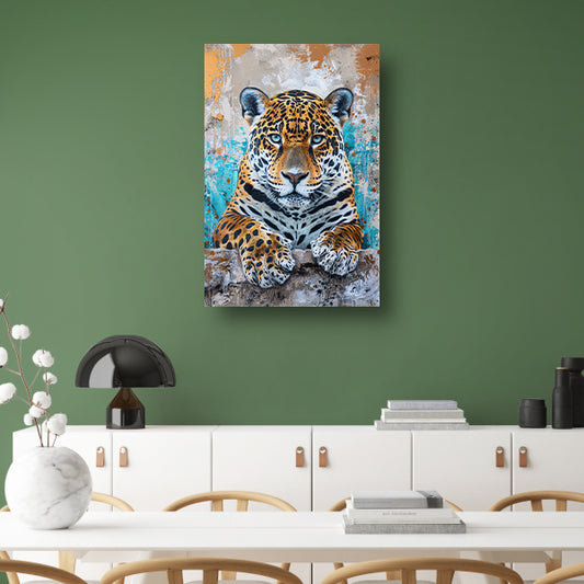 Kleurrijk abstract schilderij van een jaguar canvas met baklijst