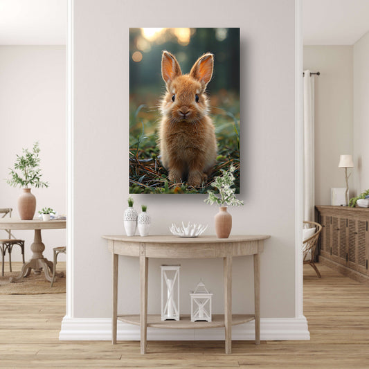 Schattig bruin konijn bij zonsondergang canvas met baklijst