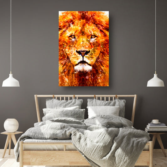 Kleurrijk abstract schilderij van een leeuw canvas met baklijst