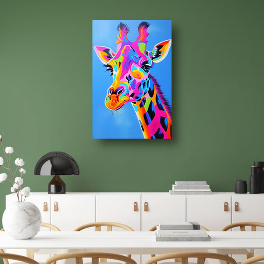 Kleurrijk en opvallend giraffe popart schilderij canvas met baklijst